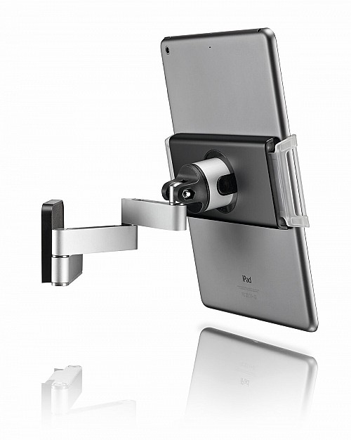 Our tablet wall mount easily attaches your tablet to the wall, cupboard or other handy spot where it's easy to see. Just clip the Vogel's holder to any tablet and snap it onto the stylish mount with our innovative RingO technology. The flexible arm lets you extend, rotate and tilt your tablet into the perfect viewing position. Now you can look up recipes, watch a cooking tutorial or even your favourite TV programme while in the kitchen